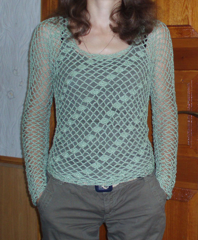 Чтобы руки были прикрыты, связала вот такую сетку на майку