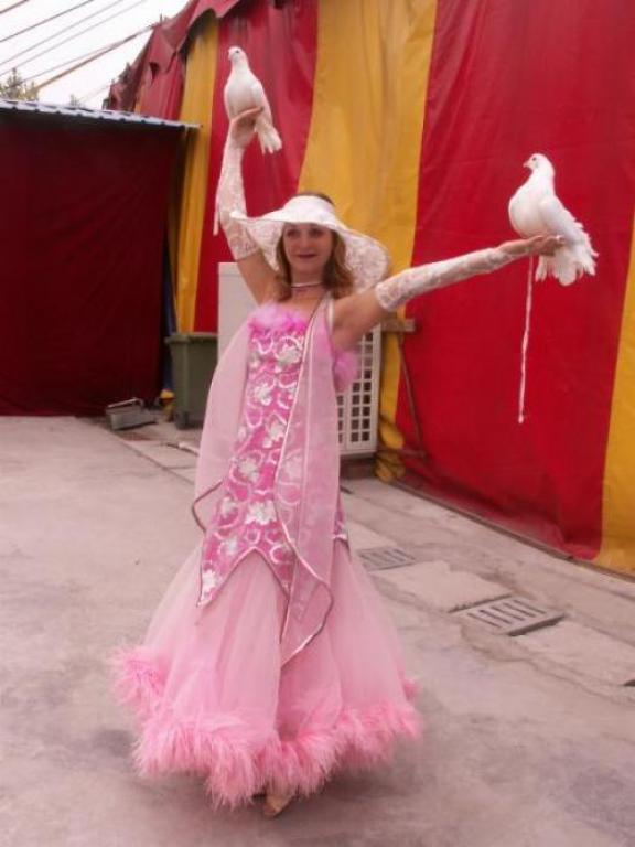 ажурная сетка положена на атлас и вле это на твердой клеевой, подол из гафре и пришито буа. рисунок по белому ажуру расшит блестками. Шляпа-этот же белый ажур натянут на аластичную проволоку(не знаю как передать точнее качества )