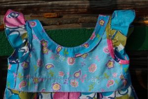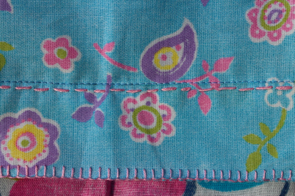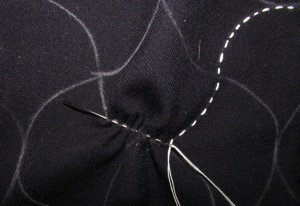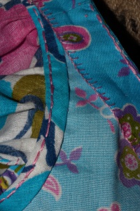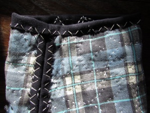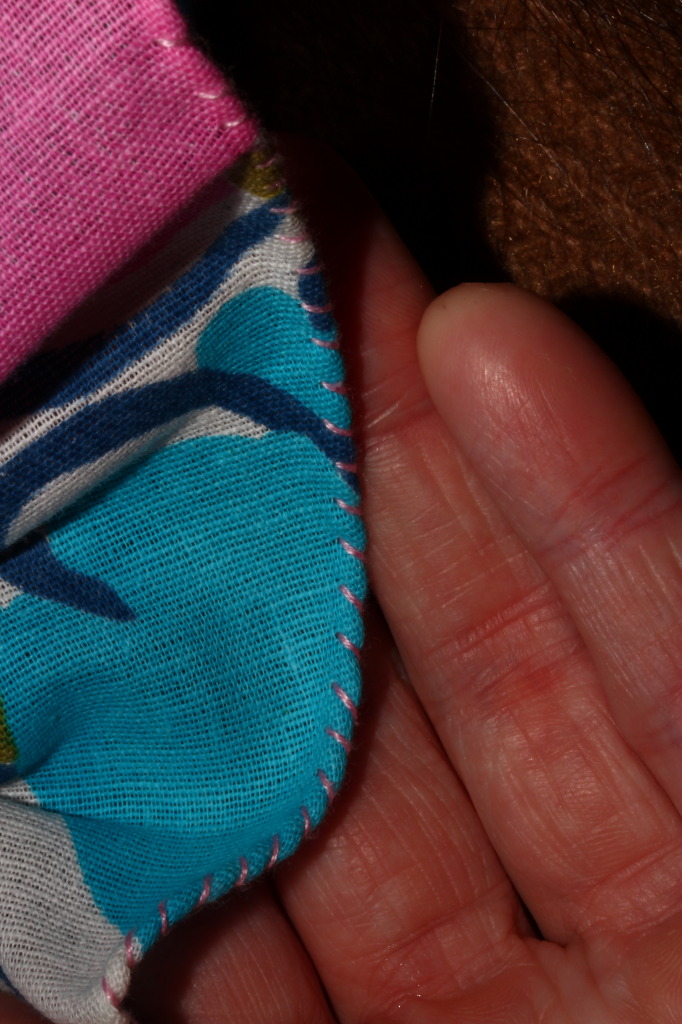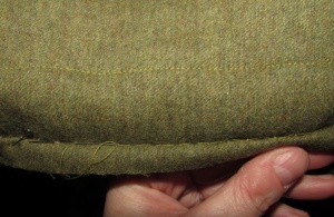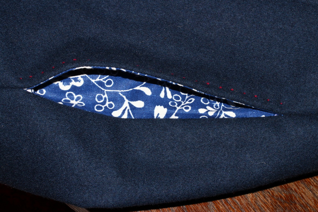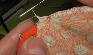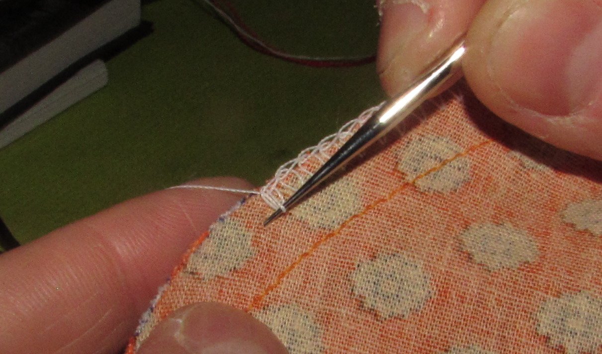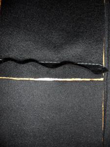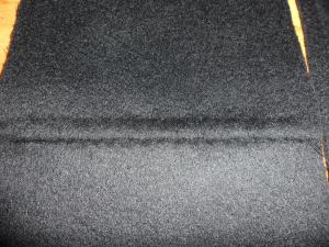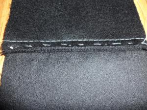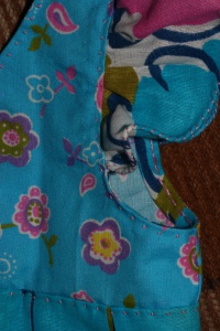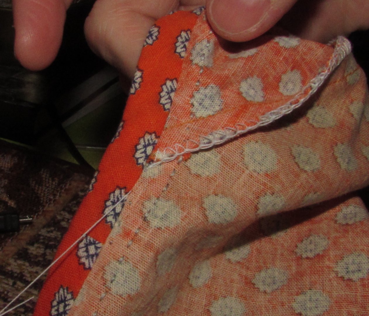 Второй сарафанчик: Швы обработаны в целом так же, только на сукне я пришила припуски козликом вперёд. С крылышком пришлось повозиться - не получалась закрутка на этой ткани. Другая подгибка смотрелась грубовато. В итоге сделала не совсем правильную закрутку - козликом вперёд по одинарной подгибке. Делаешь несколько стежков, потом затягиваешь нить: Припуски на юбке загнула всё же вниз, хотя с учётом складок получилось немного толстовато, и отстрочила по лицу точечным швом. Нитку взяла двойную - шерсть, которой вышивала - для цвета и обычную катушечную нитку - для прочности. Так же сделала и отстрочку карманов по переду (карманы самые обычные, в шве). Подгибку низа сделала широкую, но одинарную - пришила изнутри козликом вперёд и снаружи по изнанке тоже им же :) Отстрочка горловины: Продолжение следует...1 балл -