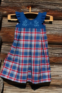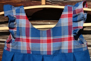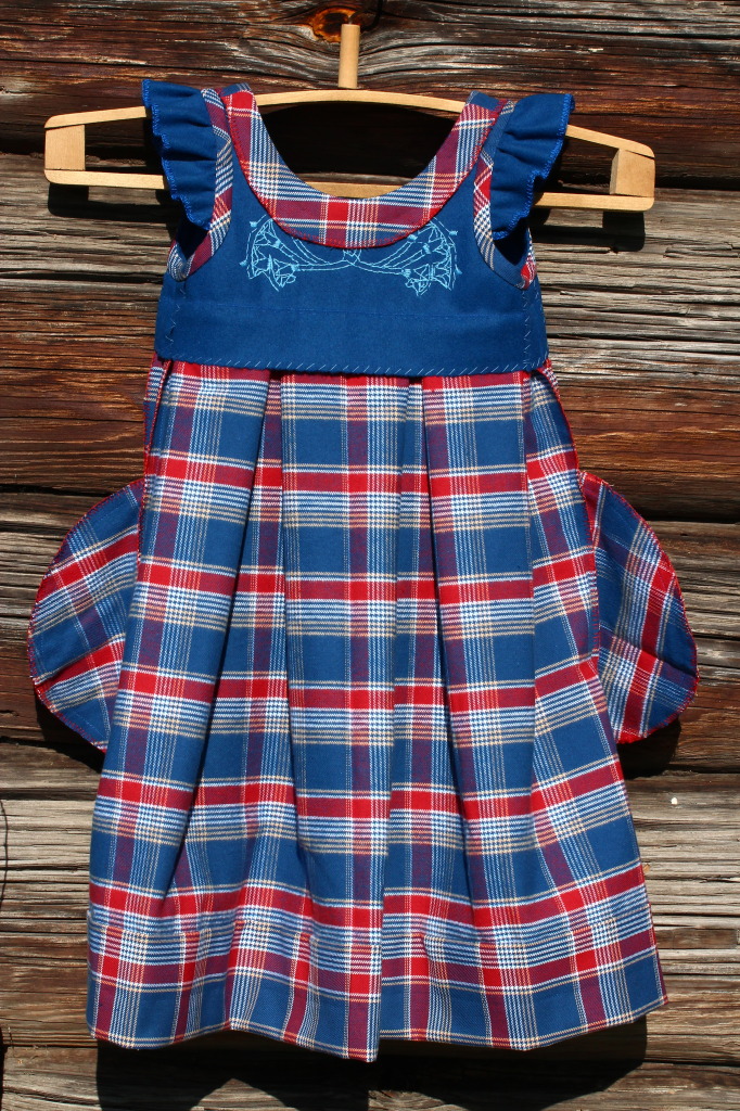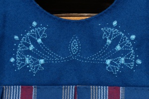Всем привет! :) Покажу школьные сарафанчики теперь. Фото до утюжки. Ткани - клетчатая вроде тонкой фланельки и синее тонкое сукно. На одном сарафане суконный верх и клетчатая юбка, на другом - наоборот. Первый (лицо и изнанка): Узор для вышивки рисовала дочка, моё только исполнение. Нитки - шерсть для вышивки "Мадейра". Швы - назад иголку (строчка и полустрочка), узелки, подобие глади :) На изнанке подкладка не предусматривалась, так что все нитки укладывала так, чтобы нигде не было протяжек, узелков тоже нет. Проймы обработала косой бейкой, горловину обтачкой (о ней расскажу отдельно). Швы на сукне обметала редкими косыми стежками (оно не сыпется), а на клетчатой ткани обвязала под оверлок :) Припуск снизу на лифе оставила с запасом на вырост. Чтобы лежал, как надо, сделала отстрочку по лицу точечным швом и с изнанки дополнительно прихватила у боковых швов парой стежков нижний край припуска. Крылышко просто обвязала такими же нитками, какими вышивала, только близкими по цвету к сукну. Подгибку тоже сделала широкую, подшила косыми стежками и дополнительно прихватила изнутри козликом вперёд, чтобы не топорщилось. Продолжение следует...1 балл -