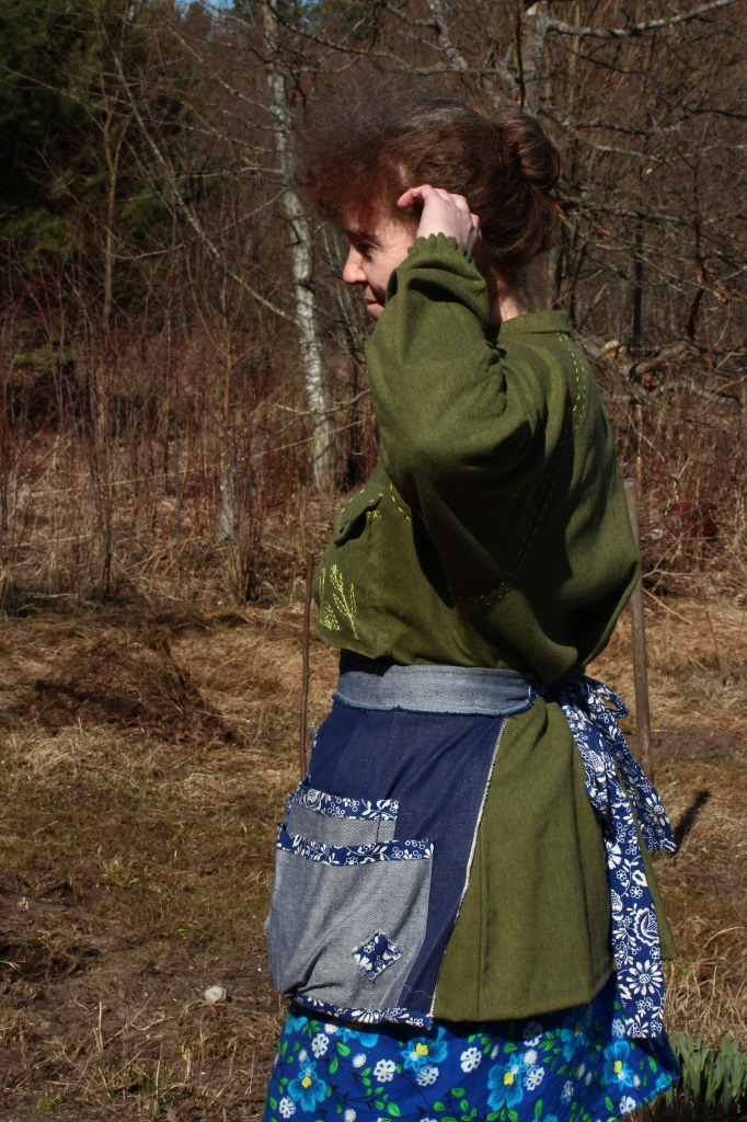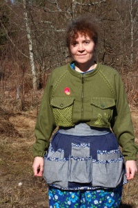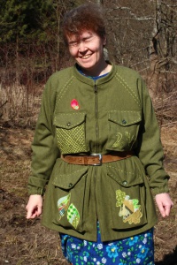 Спасибо, Фрося :) Девушки, всё думаю над своей курткой. Муж предложил померить его куртку и прикинуть, как она будет смотреться с поясом и полными карманами (свою по такой же выкройке скроила). Померила. Муж говорит - нечего париться, всё прекрасно. Но для него всегда всё прекрасно, как бы я ни вырядилась )) Так что хочу спросить у вас - может, действительно, вполне приемлемый вариант и не надо огород городить? Фото можно обсуждать совершенно свободно. С поясом: С "лесным" фартуком:1 балл -