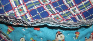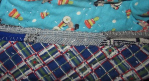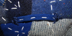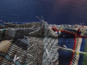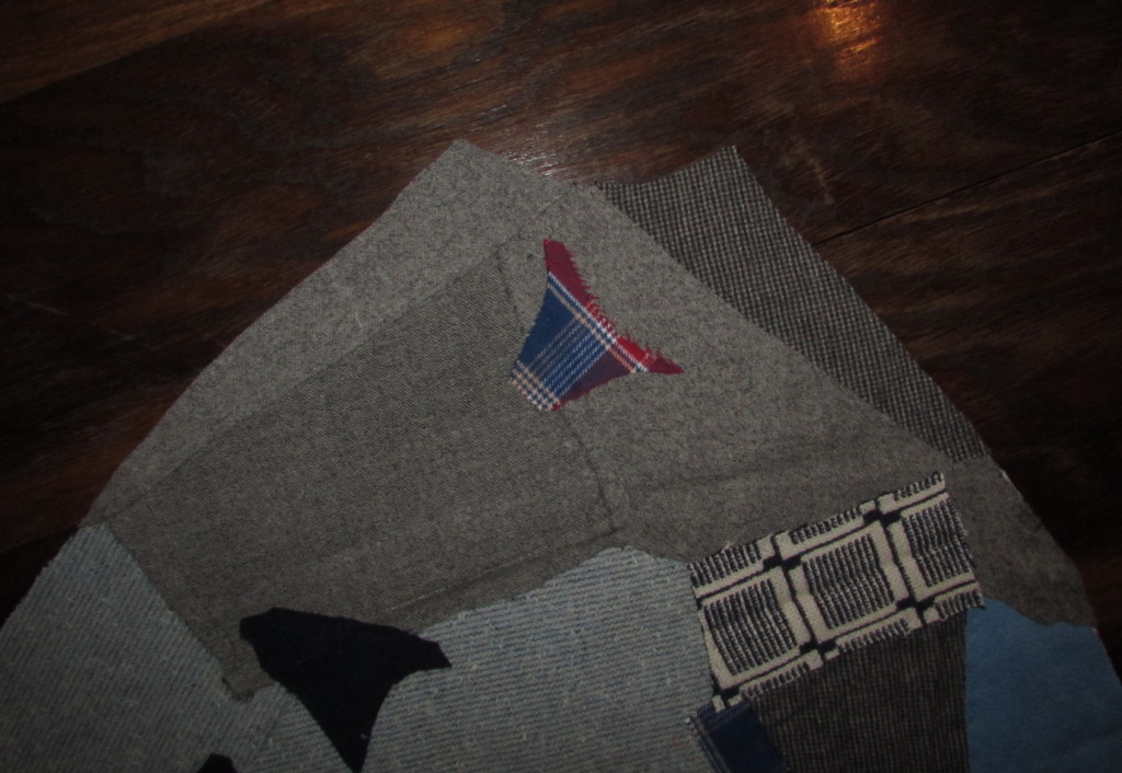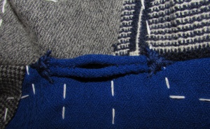 Всем привет :) Как же долго у меня получается шить.. Осталось совсем чуть-чуть, только пришить карманы и всё. А пока покажу немного процесса. Образец стёжки с изнанки: Собирала куртки на машинке, швы разутюжила (это только так называется, на самом деле обошлась без утюга) и пришила "козликом вперёд", чтобы не торчали. На стыках швов подрезала срезы. Рукава подшила так же (подгибка одинарная). Ворот-обтачка (не знаю, как правильно назвать) - просто полоска, отрезанная от старого шарфа. Три длины как раз хватило на две куртки. Полоски сшила встык, а шов закрыла тамбурным на лесенке: Эти воротники перешивала трижды, исправляла ошибки. Взяла на подкладку полоски хлопка по долевой, соединила с полосками из шарфа на машинке, потом на одной сделала отстрочку точечным швом, на другой вспушку потайной восьмёркой, которая смотрелась гораздо хуже, так что я её распорола и тоже сделала точечным :) Потом пришила к куртке ворот только вязаными половинками, чтобы хлопковые потом подогнуть и срезы спрятать внутрь. Всё растянулось, несмотря на намётку. Распорола, пришила уже вместе с подкладкой, а швы потом обработала так же, как и все остальные. По низу косая бейка (он неровный, сзади маленький хвостик), которую на изнанке пришила зигзагообразным поддёвочным швом (в западной литературе его называют шевронным). Потом мы долго думали - может, стоить сделать застёжку, но решили оставить пояс. Сшила трубочки из той же ткани, что бейка по низу. Из кусочков. Вывернула, на краях сделала японские колокольчики - простой и красивый способ обработки любых шнуров, вместо кисточек: Но теперь думаю их отрезать и сделать пояс покороче, потому что завязывать его буду иначе, чем планировала :) Муж пока не решил. Потом всё-таки пришли к выводу, что нужны карманы, хотя сначала хотели без них. Так что сделала карманы. Выбрала, какие из тканей будут меньше всего заметны. На однотонной сделала аппликацию из вязаных квадратиков работы одной из местных бабушек (наконец нашла, куда применить) и немного простой вышивки, потому что однотонность в глаза бросалась. Для второй куртки хорошо подошла клетчатая. Кармашки небольшие, но вместительные, с боковинками. Уголки я обычно сшиваю вручную: Осталось их пришить на куртку. Сегодня место выбирали, чтобы не мешали запаху, легли к узору и т.п. Ах да, ещё с поясами разобраться, есть мысль закрепить их на пуговках по бокам, чтобы не ёрзали :) Пока не знаю, что получится. И вот так всегда.. Очень надеюсь завтра-послезавтра наконец всё доделать! :) Спасибо за внимание.1 балл -