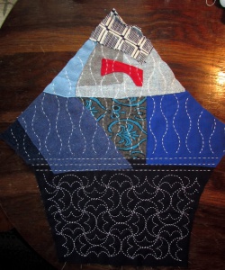Всем привет! :) Ну вот, начала стёжку. Пока простегала только обе спинки, хочу показать, что получается (до и после). На моей куртке узор дан цунаги (ступеньки) с элементами ямагата (гора): На куртке мужа узор яабани (оперение стрелы): Забыла написать: на примерке обнаружила, что слишком сузила спинки у горловины, поэтому нашила дополнительные лоскутки (за это особо люблю лоскутную одежду - легко всё исправить)1 балл -