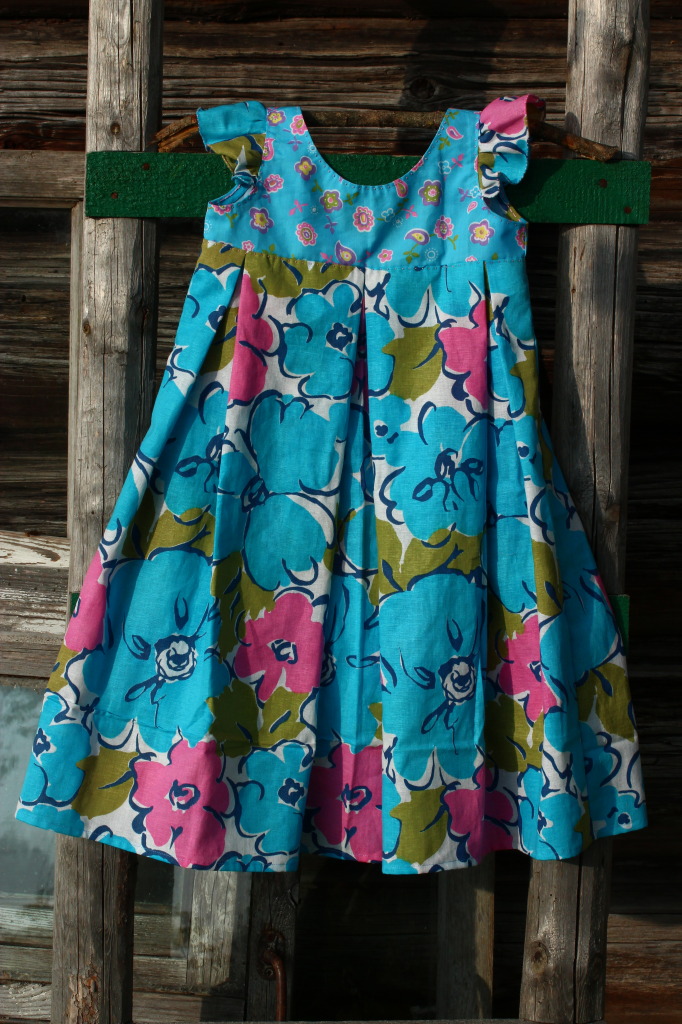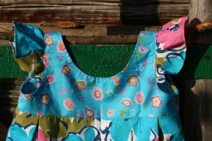 Всем привет :) Сшила сарафанчик для внучки, по сути - пробник для шитья школьной формы. Не было возможности примерить, так что очень волнуюсь, как сядет. Как обычно, стачные швы на машинке, остальное руками. Припуски на лифе оставила с запасом, для юбки не хватило на это ткани. Швы на этот раз не обвязывала, а обметала. Горловину обработала обтачкой, проймы - косой бейкой, которую пришила потайной "восьмёркой", почти незаметной с лица. Линию отреза, горловину и проймы "отстрочила" точечным швом, чтобы всё лежало в нужную сторону :) Обтачку горловины дополнительно пришила "козликом вперёд", чтобы не оттопыривалась. Крылышки обработала обычной закруткой - так они лучше топорщатся :) Все ручные швы сделаны мулине в 2-6 сложений. Картинки (до утюжки): Когда всё уже было готово, заметили дефект ткани - маленькую дырочку. Прикрыла её заплаткой: с лица пришила точечным швом мулине в одну нитку, с изнанки дополнительно косыми стежками.1 балл -