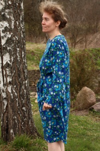 Всем привет :) Девушки, мне нужен ваш совет :) Пока шью то, что необходимо, но в голову залезло платье и не отпускает. Не знаю, что вообще мне пойдёт, вот до чего дошло :) Может, платья мне вообще теперь не носить, даже не знаю. Я уже задавала вопрос в теме "Есть ткань, нет идеи", и мне подсказали много интересного, но я не уверена, что это подойдёт моей фигуре. Больше всего понравилась идея Вали (спасибо большое за выкройку!), в качестве домашнего платья обязательно попробую, тем более, лоскутное. И ещё вариант Natalieke. Но насчёт льна вопрос остаётся и мне показалось более уместным задать его в своей теме. Ткань такая: Обе льняные, однотонная более грубая, может подойти для отделки, но не обязательно. Мне хотелось платье без оборок с плавными и строгими линиями, с рукавами раструбом и расширяющейся книзу юбкой. Лишнего веса у меня пока нет, но проблема в груди - она низкая и довольно крупная. Не знаю, что можно сделать, чтобы платье мне шло. Возможно, это зряшная затея :) Муж говорит - сшей сюрко и пару рубашек под него :) Может, и правда не стоит платье? Попробовала приталить рубашку, которую шила прошлой зимой (теперь она мне широка), и получилось некрасиво. Показываю фото (складочки заколола булавками).1 балл -