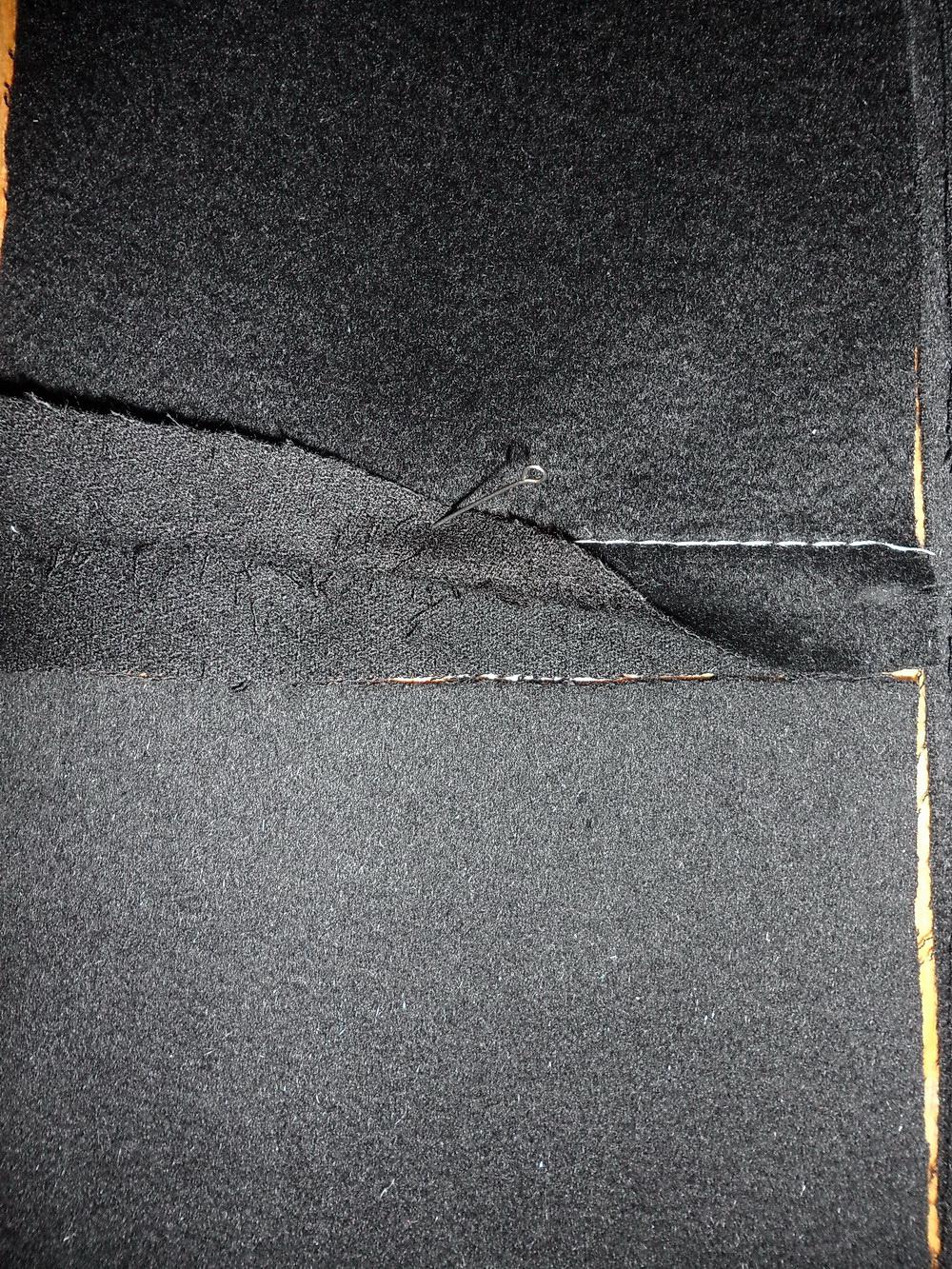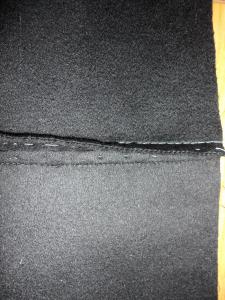 В этом изделии применяла два вида швов ... соединительный и краевой. СОЕДИНИТЕЛЬНЫЙ ШОВ - расслоить - сострочить - закрыть 1. Расслоить. Сострачивая две детали, расслаивать нужно будет только одну ... ту в которую будет заутюжен шов. Некоторые (рыхлые) ткани раньше расслаивала на глазок, но в этой нужно было точно ограничить такой участок, иначе в готовом изделии в этих местах будет наблюдаться воздушность-вздутость. Проложила строчку ослабленным стежком на расстоянии около двух см (1,8 см - т.е. двойной припуск на шов плюс пару мм) на принимающей детали и разъединила слои. 2. Сострочить Сложить детали лицом к лицу, отогнув один слой (см. фото). Сострочить швом 0,5 см. По отогнутому слою просто прострочить на 0,5 см от края. 3. Закрыть. Заутюжить состроченные срезы и "накрыть" заметанным отлетным ... затем прикрепить потайным.1 балл -