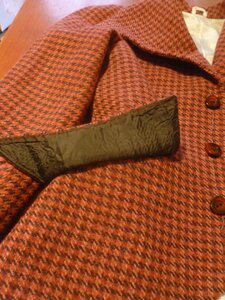 Третий кусок клетчатого слона. Пальто готово. На себе покажу, когда выздоровеет муж. Он мой фотограф и модель для парных фото. Надеюсь, обычная простуда скоро пройдёт. Результат не идеальный, но покажу, как я до него дошла. Пришила свой лейбл и вешалку, сплетенную из косых беек. Притачала подкладку к подбортам, а внизу пришила руками. Мне так легче. Сделала планку переда. Внизу промахнулась и отрезала скос не в ту сторону. Приколола и настрочила планку на полочку. Пришила верхние половинки кнопок, прикрепила к ним нижние половинки и, измазав их мелом, приложила к другому борту. Нижние половинки кнопок пришила на отпечатавшиеся кружки. Вот и всё.11 баллов -