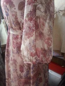 Представляю Вашему вниманию еще одно платье из ажурной ткани, не знаю как ее обозвать. Платье простое, сложность заключалось только в обработке, т.к.слишком уж она дырявая. На мое счастье широкие и узкие полосы в этой ткани можно было вырезать и о чудо! они не распускались. Вот этой широкой полосой, предварительно ее заведя и обработала горловину в ручную. С отворотами то же самое. Под это платье сшились три шелковых комбинашки. Они разные по цвету светло-серая, темно-серая и белая. На фото платье одето на светло-серую.1 балл -