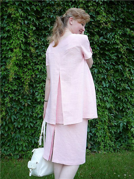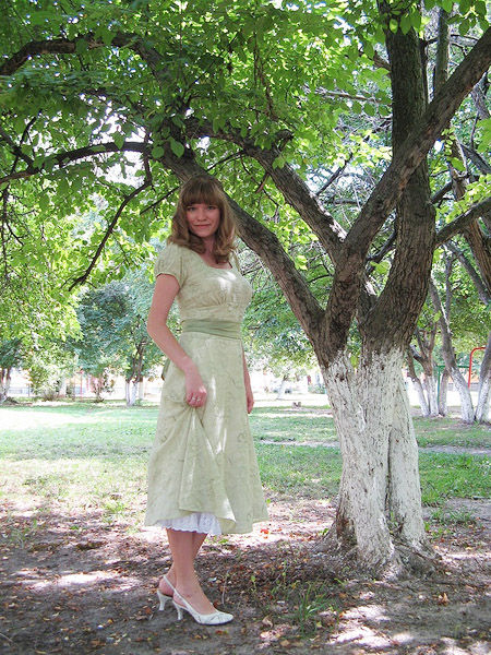 camille, огромное спасибо! в приницпе, журналы того времени как раз и удобны тем, что моделирование на рисунке видно лучше, чем на фото: видно, где цельнокроенные детали, где подрезы, куда складочки заложены. буду разбирать к осени. Renata, смотрится просто прекрасно! гораздо нежнее, аккуратнее и женственнее того, что предлагают на округлившиеся животики современные дизайнеры. здоровья Вам! Линди, совершеннейший восторг! предполагаю, как провожали взглядом на улицах: словно дива голливудская порхает :) прелесть, слов нет. ну и я наконец со своим отчетом :) платье вчера было первый раз выгуляно: http://myphoto.nnov.ru/thumb/2645c96310d403563b26c63f5e10dde7.jpg http://myphoto.nnov.ru/thumb/b260e4845ee5647a51d0a9da640d07cf.jpg очень комфортно, при достаточно узком лифе по-настоящему удобно. есть стимул держать спинку и подтягиваться даже тогда, когда сидишь :) Вот тут я показывала то платье, которое меня соблазнило на пошив... Не нью-луковое, персиковое. рядом голубенькое из старых журналов. это прообразы :) Выкройку брала из Дианы Симплисити (по той же ссылке ниже цветное платье), но ушивать пришлось значительно, спинку заменила на закрытую. Теперь чуть о технических подробностях: на нью-луковскую настоящую ширину не хватило ткани, зато длины вышла, по-моему, самое оно. ткань выбрана не очень удачно: слишком тонкая, слишком плохо держит форму. эту оплошность сильно спас подъюбник: только засчет него юбка всё-таки имеет форму, не мешает при ходьбе. ну и пояс-корсаж продублирован той же тканью, благодаря этому удалось добиться плотного облегания талии даже при такой неподходящей ткани. корсаж под молнией застегивается на крючочки. во-первых, это дополнительная страховка для молнии, нагрузка с нее снимается почти полностью. во-вторых, легкий такой эмммммм... эротический элемент: платье ни надеть, ни снять самостоятельно практически невозможно. http://myphoto.nnov.ru/thumb/16b6e34582612ed7119696c31bad8324.jpghttp://myphoto.nnov.ru/thumb/008239ac20b728308efc19fb038f31eb.jpg -------------------------- От Т.В.: Добавила высветленные фото платья, на которых фасон виднее - подрез под грудью, рукавчики1 балл -