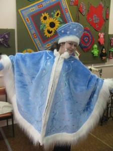 здравствуйте дорогие форумчане Меня зовут светлана или просто коротко лана, я из солнечной бурятии снегурок в моей коллекции много но догадалась сфотографировать только малую часть т. к. правило делаю на заказ работы а заказчиков знаете во первых созревают в ночь перед торжеством ну и заберают изделие в попехах. Снегурочку делала на республиканскую ёлку чтоб работать на улице Верхняя шубка на синтепоне и ещё вместо подклада проставляла флис в ней тепло Жекорировала канечно аппликация (Изнаночная) из парчи трёх цветов берюза, фиолетовый и сирень По краю апликации прикрепляла бусины с галографическим отливом( я их на новогодней герлянде увидела купила разобрала) того оттенка какого цвета фрагмент аппликации эффект получился классный даже сама не ожидала, а на счёт рукавов это как душа пела хотелось чтоб костюм был воздушный смотрелся легко вот так и получилось1 балл -