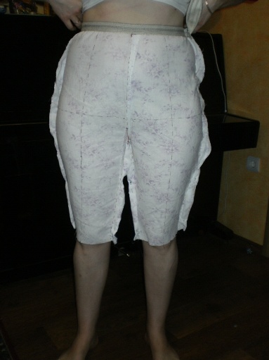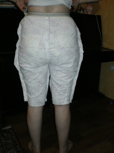 Tanya Levitz Опубликовано 14 мая, 2013 Поделиться #738 Опубликовано 14 мая, 2013 (изменено) Девочки, ну вот я и вернулась... А вопрос брючек облегающих по Мюллеру стоит также остро, как и до того. Как все начиналось, чтоб освежить память моих помощничковНапомню:* я убрала по бедрам спереди по 1 см и выпустила по среднему шву передней половинки 2 см на пузик; * выпустила по 1 см по передней половинке по боковому шву ниже линии бедра на выпуклость бедер.Вот что было: Теперь я увеличила длину среднего шва задней половинки на 1,5 см, не меняя его положения по высоте. Вот что получилось: Нравится то, что исчезла складка под ягодицей.Не нравится то, что *пошли заломы от бедра к внутренней поверхности колена; Такое чувство, что надо подтянуть по шаговому шву сзади. Как-то много ткани в этой области.*оси передних и задних полотнищ равномерно завернуты к внутренней поверхности бедра. По совету kнопки не корректировала (см. здесь корректировка на выпуклые бедра), так как тут рекомендуется убрать по шаговому и добавить по боковому шву, а ежели я так сделаю, то оси уйдут еще сильнее вовнутрь. Хочется сделать наоборот, т.е защипнуть по боковому шву, чтоб оси вернуть в исходную, но смущает избыток ткани по шаговому заднему, который уже имеет место быть...Короче, девочки, а также мальчики. Мне нужен ваш хелп! Изменено 14 мая, 2013 пользователем Tanya Levitz "Мода выходит из моды. Стиль - никогда." Коко Шанель. Ссылка на сообщение Поделиться на другие сайты Поделиться
