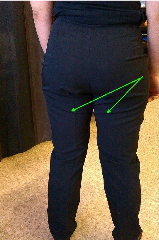 Jozzyoly Опубликовано 19 апреля, 2014 Поделиться #960 Опубликовано 19 апреля, 2014 Ну вот, я с примерки - честно, я в отчаянии! Улучшений не вижу. Выпустила из шаговых швов чуть больше сантиметра. Внизу забрала с внутренней стороны 0,7 см, с внешней на уровне колена 0,5 см. И все равно эти складки под ягодицами! Ну что делать??? Помогите пожалуйста! Вот вид сбоку и спереди. Впереди вроде все нормально. Ссылка на сообщение Поделиться на другие сайты Поделиться