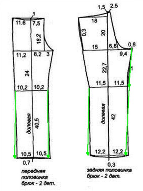 Кисочка Опубликовано 24 апреля, 2014 Поделиться #968 Опубликовано 24 апреля, 2014 Вот так меняется наклон средней линии задней половины, при таких заломах. http://nouvelle-robe.ru/images/big/pant.jpgПунктирная линия- то что было. Сплошная линия-то что стало.************************************************************По поводу ВТО. Его делают, когда оно заложено в конструкцию, все остальное - это просто разутюживание или зауютижвание швов. ВТО имеет смысл делать на тканях из натуральных или искусственных волокон (вискоза). Синтетика с эластаном не поддается ВТО, она возвращается в прежнее состояние. И если вы заложите оттяжку по задней половине в 1 см, он соберется потом на шве и не улучшит посадку. ВТО закладывают в средней линии задней половины, выпрямляя ее утюгом, и в оттяжке шагового шва по задней половине. Согласна целиком и полностью с La_femme. Нет идеальных лекал брюк, каждая модели и каждая ткань требует своих поправок. Вы можете сделать идеальные, как вам кажется, лекала, сшить пять брюк, а на шестых столкнутся опять с заломами. Кроме определения ширины шага по обхвату конкретной ноги, она меняется взависимости от модели, это легко проследить в методике Мюллера. Чем шире колено, тем дальше оказываются точки пересечения с линией сидения, и брюки шире по линии сидения. Ссылка на сообщение Поделиться на другие сайты Поделиться