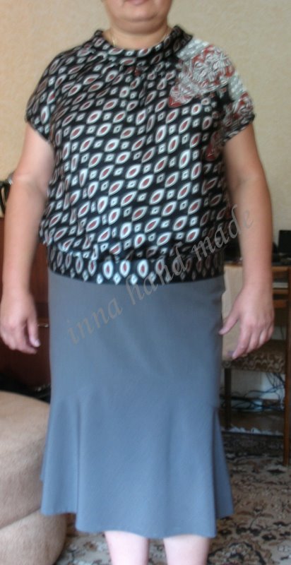 Т.В. Опубликовано 19 июля, 2010 Автор Поделиться #202 Опубликовано 19 июля, 2010 В авторской теме Juice Cарафан для веселой и яркой девушки шикарных форм (р-р 60) Батист с напечатанным узором и "прожженными" по рисунку дырочками. Полностью на подкладке из желтой батистовой жатки. Средняя часть до полубедра по фигуре, ниже - трехярусная юбка. На лифе под грудью по три складочки вместо вытачек. Сарафан носится с бюстгалтером, бретели широкие и на примерке уточнили их местоположение, чтобы они как раз прикрывали бретельки бюстгальтера. Юбка расчитывалась так (давно обещала рассказать и забыла, сорри).Длина юбки 90 см 3 яруса, каждый последующий шире предыдущего на одну и ту же величину. Т.е. если самая узкая оборка - допустим 25 см, то вторая =25+а, а третья =25+2а90=25+(25+а)+(25+2а)3а=90-75=15а=5 (см)т.о 1-й ярус шириной 25 см, второй - 30 см, третий - 35 смКоэффициент сборки именно в этом сарафане выбран 1,6 - чтобы и не слишком много и было заметно, меньше 1,3 выглядит некрасивоОбхват бедер в месте притачивания юбки к средней части сарафана=115 см. Длина полосы для первого, верхнего яруса юбки 115х1,6=184 смдля второго - 184х1,6=295 смдля третьего 295х1,6=472 см Нарезала полосы соответствующей ширины с учетом раппотра рисунка, помудрила, чтобы дотачиваемые кусочки экономно кроились и швы располагались симметрично, подрегулировала свою лапку для сборки, чтобы собирала рочно так, как мне надо и вперед)) Нижний подкладочный слой кроился А-образно, чашечки лифа только отдельно и полностью повторяют соответствующие детали верха====================================================== В авторской теме allbina Цитирую:Платюшко отшилось такое, сдержанно-нарядное, никаких излишеств, токо стройнящие конструктивно-декоративные линии. Мерки: 113-98-117. Классика жанра --- большая грудь и узкая грудная клетка. http://club.season.ru/uploads/post-13235-1279406971_thumb.jpgМеня интересует, как такие складки на юбке смотрятся на полной фигуре.Их по четыре с каждой стороны для очистки совести (может много?) попробовала убрать боковые --- хуже, здорово обьём "разбивают", атлас усиливает эффект.====================================================== В авторской теме EleganteШелк и кружево для мамы невесты ( 58размер)http://club.season.ru/uploads/post-7565-1279858222_thumb.jpg Ссылка на сообщение Поделиться на другие сайты Поделиться