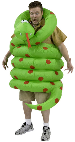 Голова актера в голове змеи, ее капюшон - две руки, по центру - торс. От пояса - кольца змеи (юбка), низ - якобы кувшин или корзина. Но... на лицо статика. Т.е если и расскачивается из стороны в сторону - то только это, может конец хвоста сделать на одну руку, может просовывать в голову руку и открывать пасть. Сложно. Персонаж сложный, но делать надо.