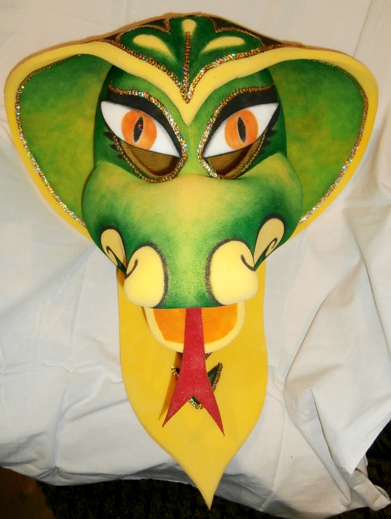 Здравствуйте дорогие форумчане. Вы кладываю для обсуждения новую маску змеи. Но она у меня получилась немного( а может много) вамп. А мне нужно сделать еще и добрую змейку. Из односантиметрового поролона. Может не очень прочна будет . И дышать и обзор легче.