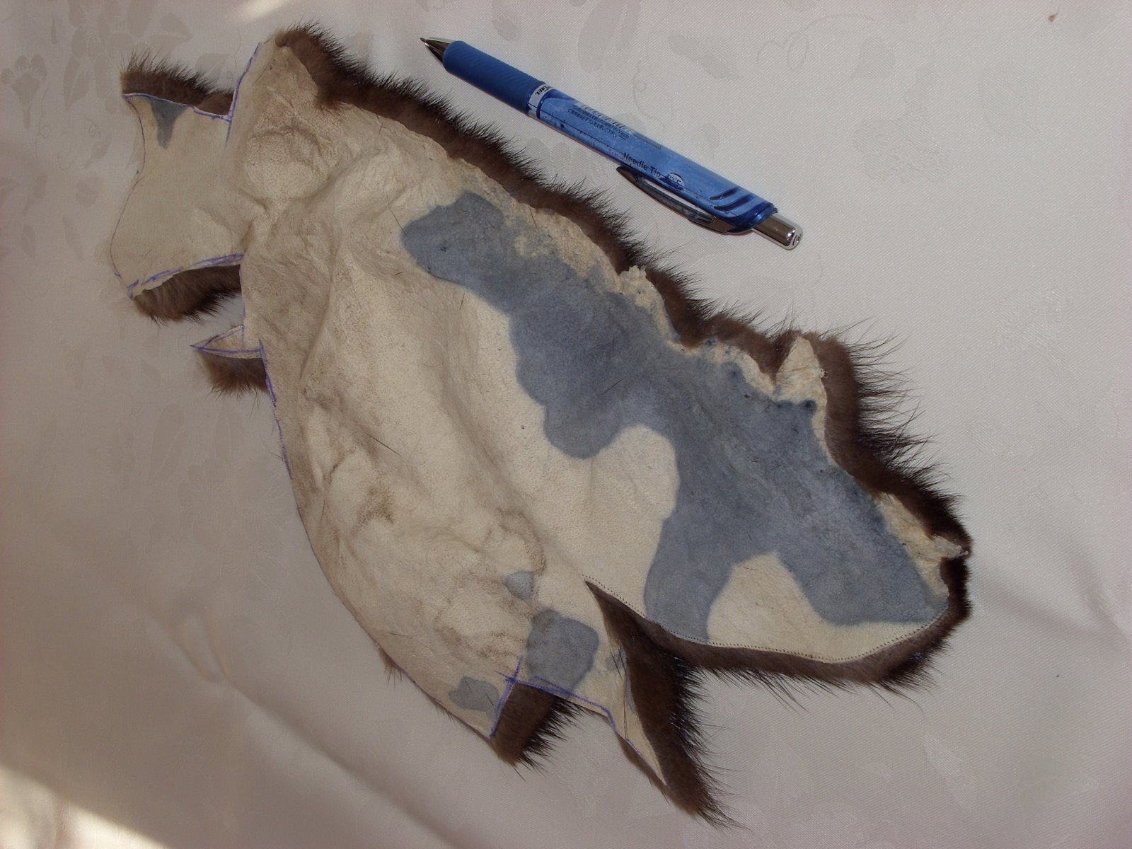 Маша-Марина Опубликовано 13 февраля, 2012 Поделиться #450 Опубликовано 13 февраля, 2012 Здравствуйте!Отчет о проделанной работе!Большое спасибо за советы. Теперь расскажу про мой опыт.Берет небольшой по объему из норки. Техника обвязывание сетки.Исходные материалы:1. Кусок меха от старых экспериментов. Цвет не совпадает с основным мехом. Чуть светлее. Я его покрасила краской для волос. Темно каштановым с добавлением черного,потому что уже по опыту знала, что нужно темнее. Потом помыла,ополоснула ополаскивателем,натянула на щит, прожировала, высушила. Промяла руками. Зверек хорошо пережил перелицовку и стал даже лучше и пушистее, чем был.2. Небольшая по объему старая шапка.Хорошее состояние. Норка, как я понимаю, скандинавская. Темная.С густым подшерстком,не высокой остью. Там интересная конструкция внутри была. Упругая сетка, которая держала форму, поэтому мездра не клеяная просто сформованая.Сетка пришита только внизу по периметру. Выделка хорошая. https://vk.com/id3743784 Ссылка на сообщение Поделиться на другие сайты Поделиться