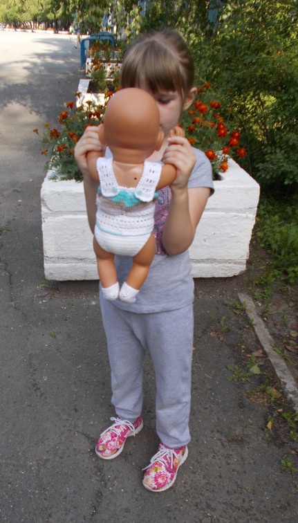 Gemchugina Опубликовано 24 апреля, 2017 Поделиться #46 Опубликовано 24 апреля, 2017 Ах, какой показ замечательный!Такое разнообразие и каждая модель интересна!Спасибо, что показываете! Только грузите, пожалуйста, фото в пост, так их удобней листать. Кроме того, фото со сторонних ресурсов со временем пропадают, очень жалко, когда приходится удалять целые ветки без фото.Спасибо огромное!!!!!!!!!!Да, да, про фотографии уже все поняла, учла. Конечно, очень жаль, когда пропадают фотографии. Выполняю обещание (уж, простите, что так не сразу, обещаю исправиться). Пришла с АЛенкой, ну, и Андрейку покажу заодно.Маечка и трусики для Андрейки связаны из остатков турецкого хлопка, бирюзовая полосочка - БЭБИ БАТИК, белая БЕЛЛА. Носочки вязала уже несколько лет назад, из камтексовского ХЛОПКА-СТРЕЙЧ, очень люблю эту пряжу Сейчас для лямочек пришиты по две пуговки, одной оказалось маловато. А это наша Аленка. Ее Ксене принес Дед Мороз. Аленка - сестричка Бэби Бон. И ее параметры аналогичны параметрам Андрейки, потому что он "почти Бэби Бон". И теперь мне удобно одевать их параллельно, примерки можно делать, как одному, так и другому. Так получилось у нас, когда я вязала белый зимний свитер для Андрейки. Он в это время был в Бердске, а у меня была только Аленка. Вот, что у меня получилось А этот комплект мне пришлось вязать сразу после того, как Аленка у нас поселилась. На дворе была зима, а она в легкой футболке и штанишках Я - Татьяна. Шью и вяжу спицами, крючком, себе, близким, любимым и родным людям.Не знать не стыдно - всегда можно спросить у того, кто знает. Стыдно не знать, но делать вид и утверждать, что знаешь. Ссылка на сообщение Поделиться на другие сайты Поделиться