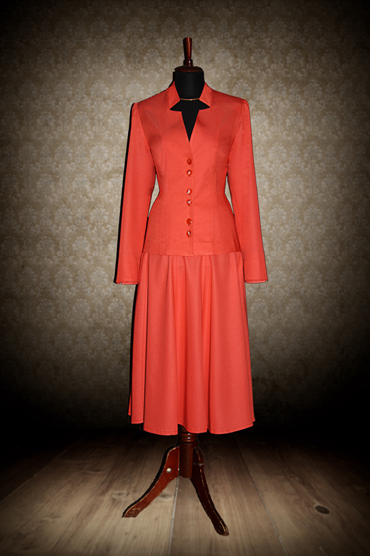 разбавим череду свадебных платьев ярко-коралловым повседневным костюмчиком (тоненькая джинса-стрейч):