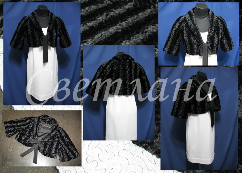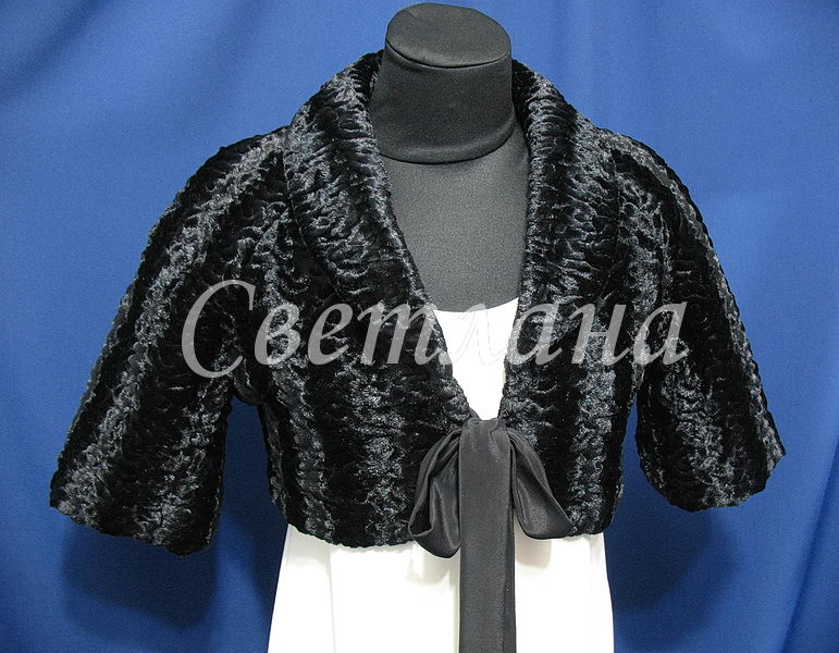 Ничего особенного сказать о нём не могу. Заказчица захотела расширенный рукав реглан,и небольшой воротник,что я и сделала :) Застёжка на завязках под ткань вечернего платья. Болеро без плечевых накладок,но на подкладке :)))