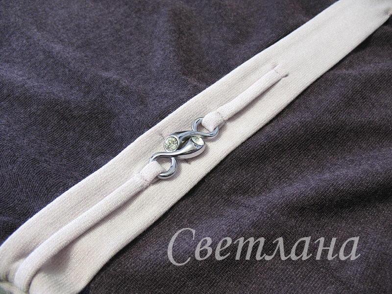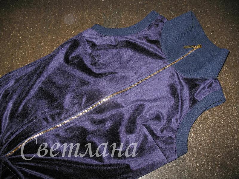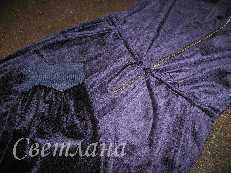 Стойку воротника, манжеты сделали из трикотажа, чуток подходящего по цвету к основной ткани. Так как трикотаж очень мягкий, стойку проклеила трикотажным дублерином, получилось самое тооо. Комбинезон с подрезом по линии заниженной талии, с кулиской.