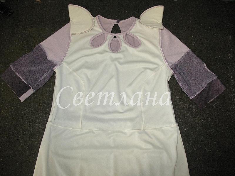 Рукав получился из того что оставалось. Платье на трикотажной подкладке светлого цвета. Клиентке понравилось, и это главное :)