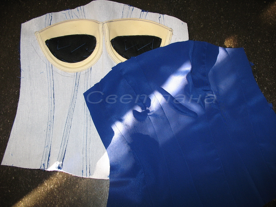 Ткань корсета (шелк)выгорел на солнце(гардероб находится на лоджии) как я увидела его... ужаснулась! Вот решили обновить платье))))
