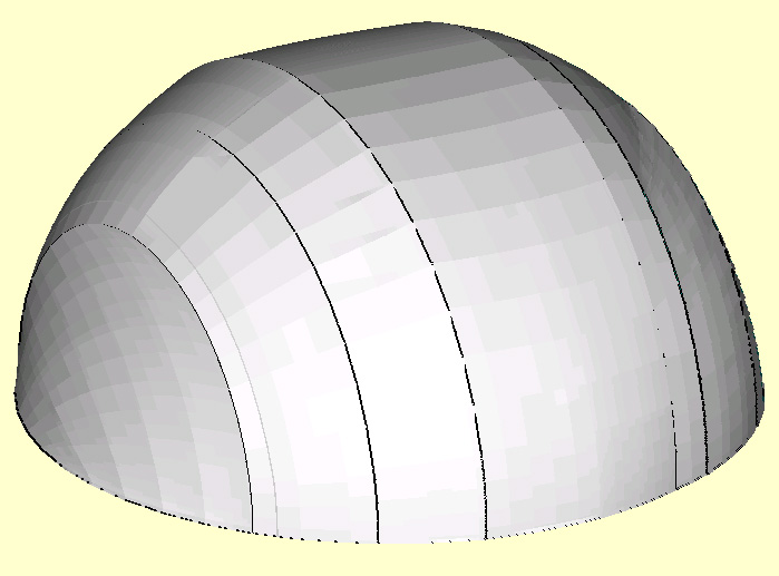 Возьмите половину сферы, разрежьте её на семь частей (параллельными плоскостями).