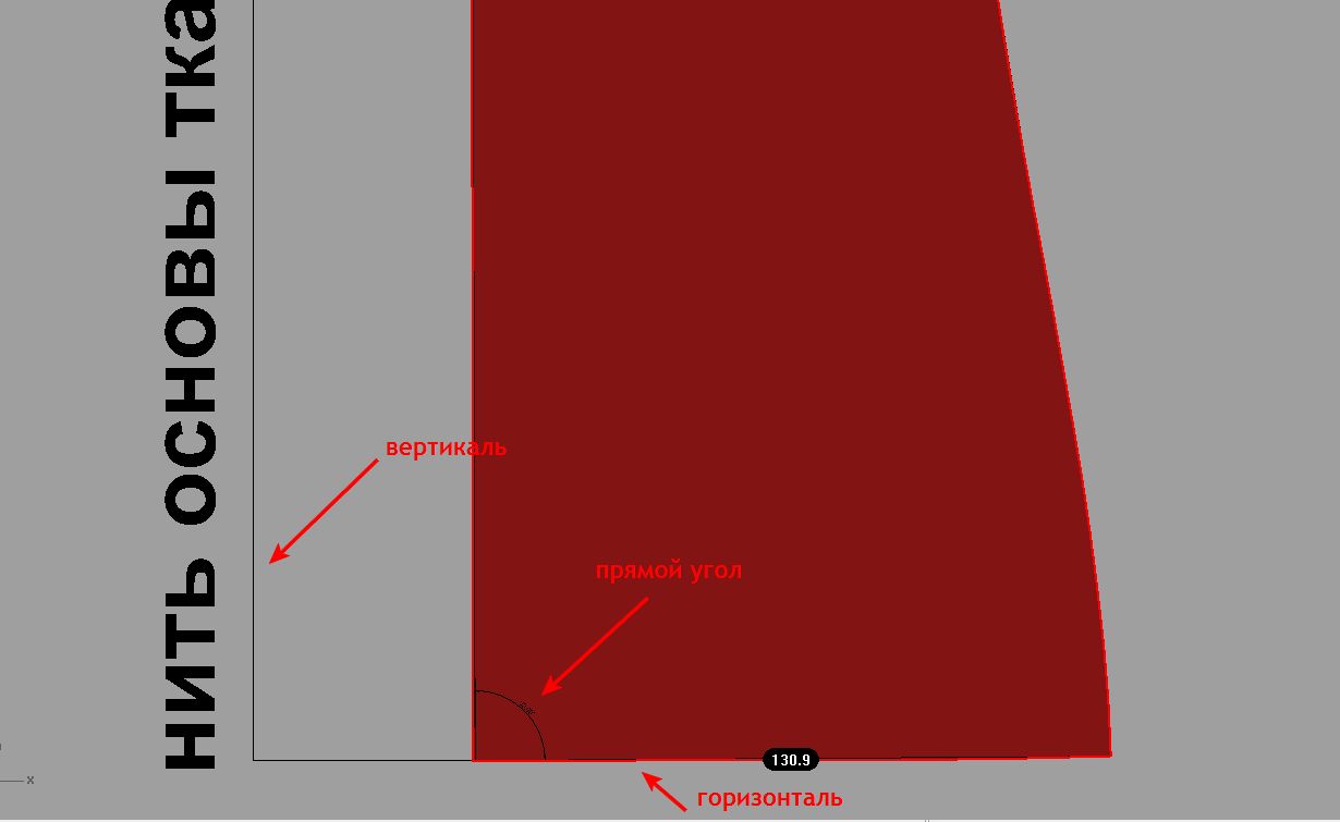Низ лекала спинки строго по горизонтали. Ведь и низ сети спинки в пространстве тоже горизонтален.