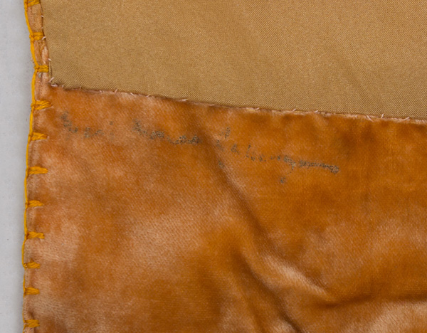 Все сшито вручную. Пояс покрашен вручную методом трафарета (hand-stenciled sash).