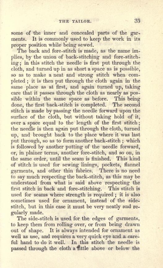 Интересная книга на английском, для тех, кто интересуется старинными технологиями, историей. https://archive.org/stream/tailorlondon00lo...e/n103/mode/2up В данной книге 'The Tailor", предположительно 1840х годов, рассказывается об определенных ручных швах и их назначении. Скорее всего, материал касается в основном, мужской одежды, жилетов: в книге рекомендации для подмастерьев и для молодых людей, как сохранять одежду. (Надо вчитываться.) Картинок почти нет, совсем чуть-чуть. Швы называются иначе, чем в другой литературе, но зато прописаны кое-какие спецификации (какие швы для чего используюстся и их варианты).