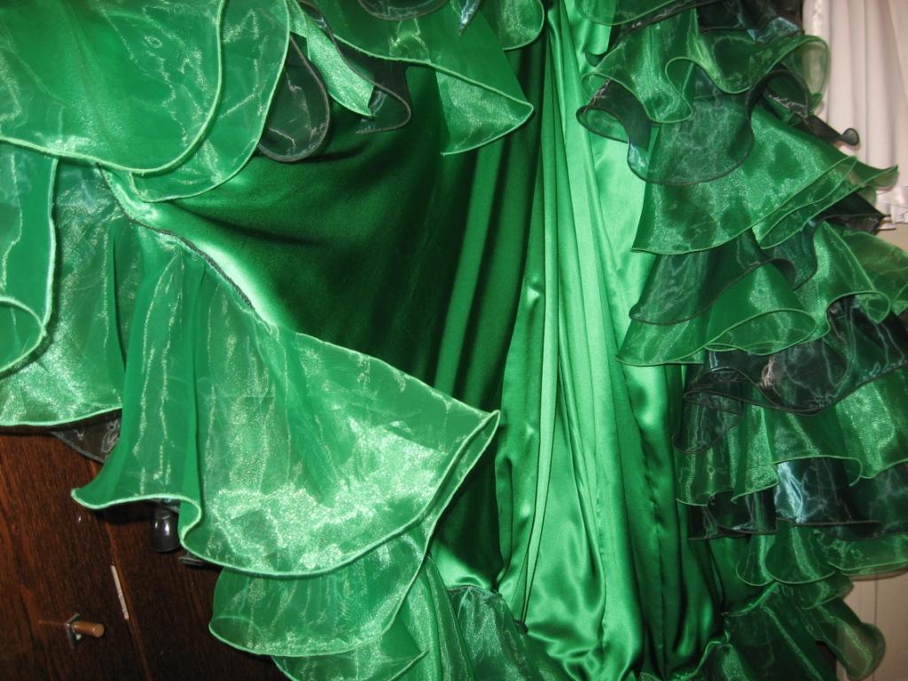 Галина Опубликовано 15 июня, 2009 Автор Поделиться #60 Опубликовано 15 июня, 2009 Юбку, как могла, сфотографировала. Оборки из органзы двух цветов - в тон атласа, визуальная разница только за счет фактур, и черно-зеленый хамелеон. Подкладка - из этого же атласа. Впереди по левой ноге - высокий разрез. Соответственно, при движениях будет видна богатая подкладка. Ну и к телу не синтетическая колючка. Воланы обработаны закруткой с леской. Очень не люблю такие ткани, как капроновая органза (даже в одном помещении с органзой не могу находиться - чувствую ее запах, другие не чувствуют), но именно это захотела хозяйка костюма. Шифон не достаточно пышен, она сказала. Не спросила о сфере ее профессиональных интересов, но похоже на шоу-бизнес. Если так, то выбор понятен. Вся ее семья смотрела юбку, и им понравилось. К этому она заказала какое-то умопомрачительное бисерное колье. Может быть, покажет. ГалинаМой альбом Колодец мечты Ссылка на сообщение Поделиться на другие сайты Поделиться