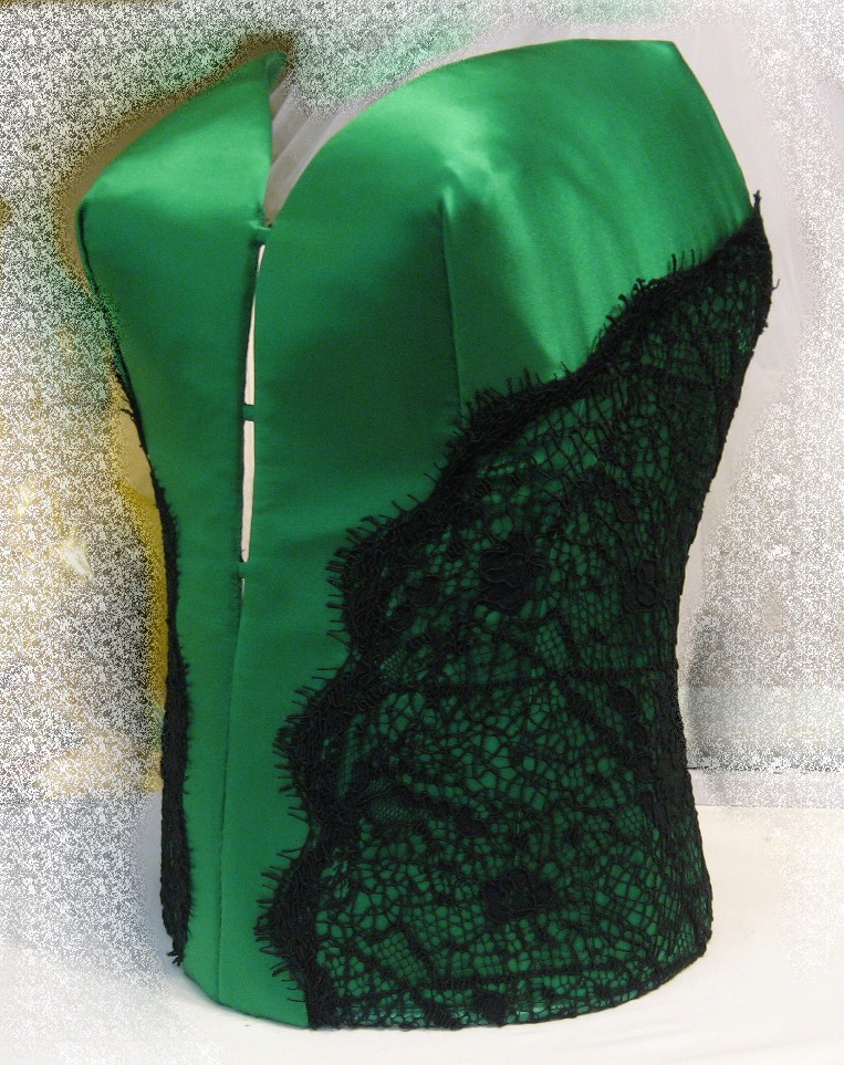 Галина Опубликовано 14 июня, 2009 Автор Поделиться #55 Опубликовано 14 июня, 2009 (изменено) Корсет для взрослой яркой дамы. Именной шелк и кружево. К нему идет юбка из оборок, ничего интересного, поэтому не показываю. Между корсетом и юбкой будет задрапированный пояс на бедрах. Корсет сделан из жесткой сетки, практически строительный материал. Цель - вылепить форму из 90-85-95. Сзади - потайная шнуровка на уровне талии; эта шнуровка держит всю конструкцию. Сверху на отдельном пластроне - декоративная шнуровка из воздушныхпетелек. Цель - чтобы не перетянуть в области груди и бедер. Впереди под зелеными "крышками" - нормальные чашки хорошей формы. "Крышки" только касаются тела, прикрывая не совсем тренированную часть в области соединения руки с телом, зрительно приподнимают и увеличивают грудь, что хотелось. Изменено 14 июня, 2009 пользователем Галина ГалинаМой альбом Колодец мечты Ссылка на сообщение Поделиться на другие сайты Поделиться