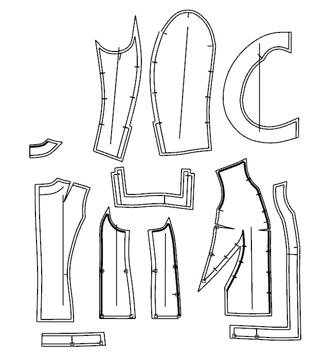 Natamoda Опубликовано 22 марта, 2017 Поделиться #3124 Опубликовано 22 марта, 2017 А на скрины 3D полюбоваться можно будет по традиции? Конечно.Начну с жакета. Задумывался и делались лекала больше года назад. Планировался под джинсы, поэтому в Рино был длиннее Не было понятно, какая в результате будет отделка, поэтому на виртуальной примерке изобразила как бы тесьму (уже жакет укоротила на 5см по сравнению с Рино) Волан планировался длиннее, как в прототипе, но разница в изнаночной и лицевой стороне ткани заставило укоротить его. Шикарное украшение, которое сделала Ирина, компенсировало нехватку длины волана и стало всё уравновешенно. Маленькие вытачки на лекалах - это сутюжка ткани. Теперь о блузе. На первый взгляд ничего сложного. Переводи нагрудные и наплечные вытачки к талии и всё.Не тут то было.Вначале пыталась повторить складку, как в прототипе, то есть, чтобы она шла от горловины. Добавила свободу в области груди. Но на виртуальной примерке увидела, что складка идёт не вертикально, а сползает с груди Уменьшила величину разведения, стало гораздо лучше Самая главная засада - определение вершины вытачки, которая образует складка. Я знала, что вытачку надо делать длиннее центра груди и сделать смещённой к центру блузы. При раскрытии складки она должна попасть на центр груди. Стороны вытачек, естественно, уравнивала.На виртуальной примерке получился страх и ужас, складка некрасиво подтягивалась, срезы у талии надо было корректировать. Что я и делала на виртуальной примерки методом "тыка", пока внешний вид не понравился.Вот как в результате выглядела складка (показываю с одной стороны) Но что удивительно, стороны складки и внутренняя линия сгиба совершенно разной длины и не совпадает со смежными линиями, по которым нужно закладывать складку. Предупредила Ирину, чтобы она дала дополнительный припуск по талии, если реальная примерка потребует классического подхода к складке с равными сторонами. Но корректировка не потребовалась. Очередной раз порадовалась за виртуальную примерку. Всё таки можно доверять! До виртуальной примерки лекала выглядели такА это уже лекала, по которым Ирина кроилаЗастёжка сбоку на потайной молнииВывод - дистанционные лекала с различными драпировками без возможности проверки на виртуальной примерке требуют уточнения наколкой. Поведение складок зависят от направления долевой, относительно которой они располагаются, свойств ткани (насколько она тянется по косой), что невозможно просчитать на бумажных лекалах. Хочу выразить восхищение результатом! Я уже со счёта сбилась, сколько курсов и мастер классов прошла Ирина, и все свои знания и умения она с успехом применяет при создании очередного шедевра. Лекала лекалами, но много чего привносится со стороны Ирины, чего я не в состоянии ни предусмотреть, ни просчитать. Мой блог 3Д лекала дистанционно Ссылка на сообщение Поделиться на другие сайты Поделиться
