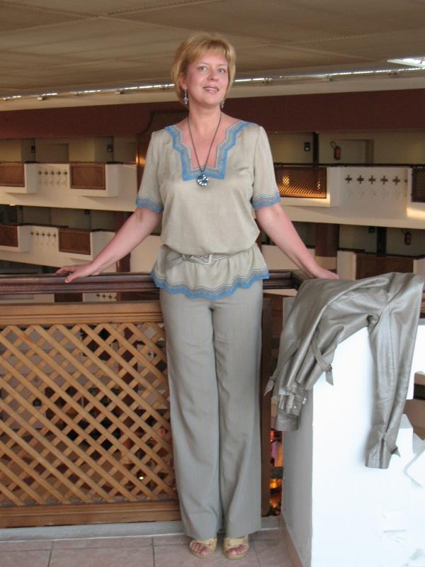 Калита Опубликовано 8 мая, 2007 Автор Поделиться #31 Опубликовано 8 мая, 2007 (изменено) Большой показ нового гардероба для прошедшего отпуска -)))http://keep4u.ru/imgs/s/070508/a415efaef0feb425c2.jpg http://keep4u.ru/imgs/s/070508/c239aecd889317b653.jpg http://keep4u.ru/imgs/s/070508/8eb01d83d6c652e28b.jpghttp://keep4u.ru/imgs/s/070508/95b4360beee1e886b4.jpg http://keep4u.ru/imgs/s/070508/9a86ee8eeaee65e76a.jpgКомментарии: 1. Юбка из хлопка - четверть солнце. Перевела два метра, чтобы совместить полосы -)) Майка готовая(лежала 2 года без применения, пока я не обнаружила ее полное совпадение с цветом ткани), только пришила к ней кружево, вышитое золотым металликом. 2. Джинсы готовые. Блузка из вискозного трикотажа. Вырез - небольшая качелька, половина нагрудной вытачки переведена вниз, за счет этого получено расклешение, чуть выше уровня бедер пришита широкая резинка, которая создает напуск.3. Блузка шелковая, а пояс и сумочка сделаны из кожи и вышиты.4. Совсем скучный трикотаж я украсила кружевом, которое тоже вышивала сама. На брюках - тонкие синие полоски в цвет кружева, а пояс сделан из ткани куртки, которая лежит рядом. И пояс и куртка не новые, сшиты 2 года назад, я их показывала, но по цвету подошли идеально.5. Купальник сшит тоже прошлой весной, но обновлен только сейчас. Вот по этой ссылке есть еще фотографии из отпуска. Там тоже фото некоторых вещей сшитых раньше, но в новых вариантах комплектов. http://marocco.keep4u.ru Прим.модератора: кому не видно фоток, можете посмотреть их же в сообщении № 45! Приятного просмотра ;) Изменено 9 мая, 2007 пользователем Юлико мой инстаграм Ссылка на сообщение Поделиться на другие сайты Поделиться
