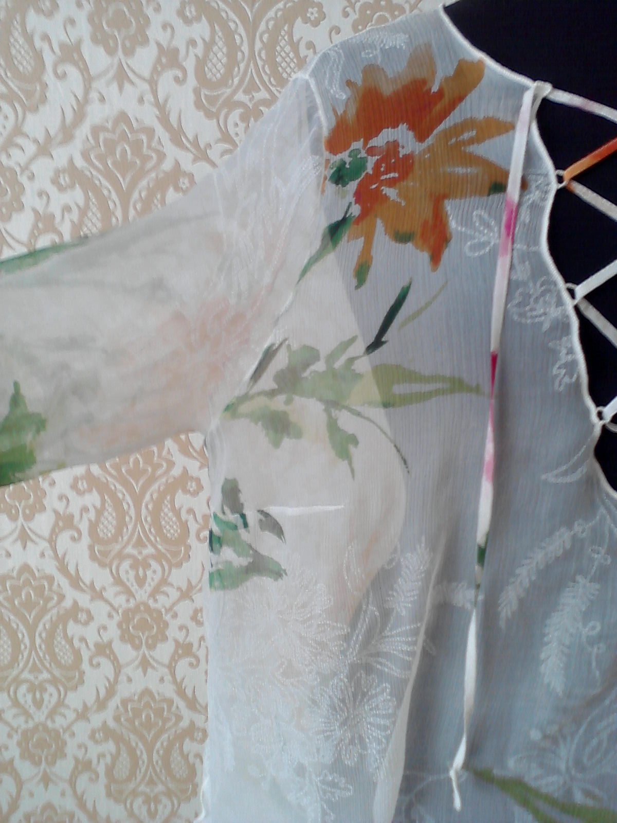Ткань, хлобчатобумажный габардин, расшит шёлковым шифоном.