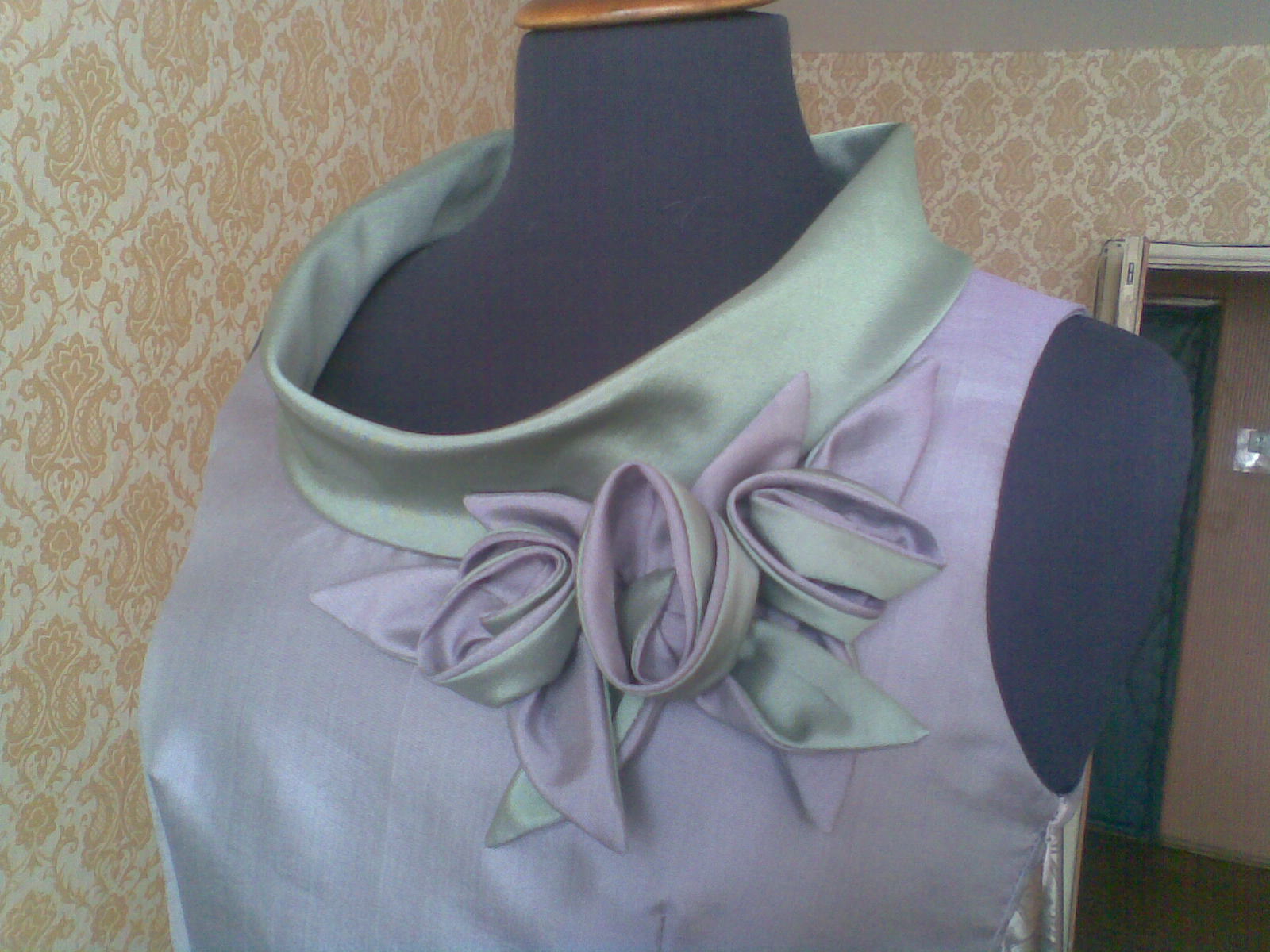 вообще если чесно, пальто, это работа по-моему семилетней давности, всё особо не-упомнишь(просто "закрома большие"), но это было достаточно жёсткое сукно, пальто делалось без подкладки, все швы обрабатывались косой бейкой из вискозной подклаочной ткани(очень люблю, когда вещь как "конфетка" внутри), ну а выкройку розочек, сниму завтра, вот платье к пальто