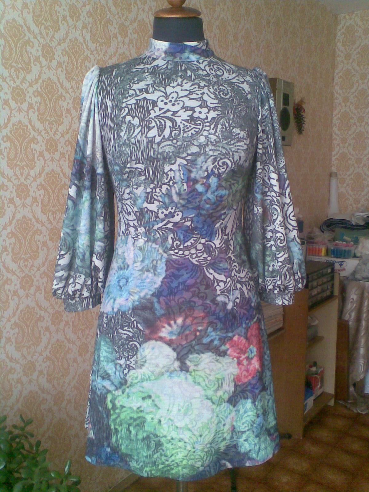 P.S. Пальто, достаточно интересно по покрою, шва только три, средний шов спинки и боковые части спинки, остальное выточки, по три с каждой стороны, в комплекте шло платье с таким же рисунком, только из вискозного трикотажа.