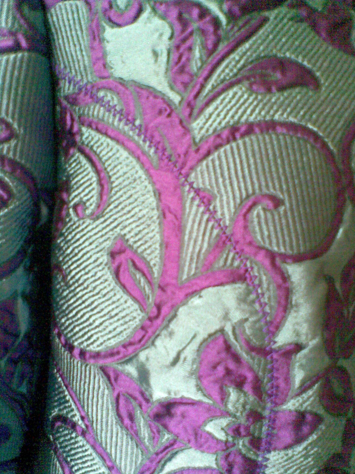 Куртка из шёлкового жакарда, который был проклеен тонким синтепоном, молния "Riri" пришлось её покрасить в цвет ткани, воротник из стриженного и щипаного кролика, отделочные строчки - крупный зиг-заг, нитки Gutermann, суперпрочные (30 м)