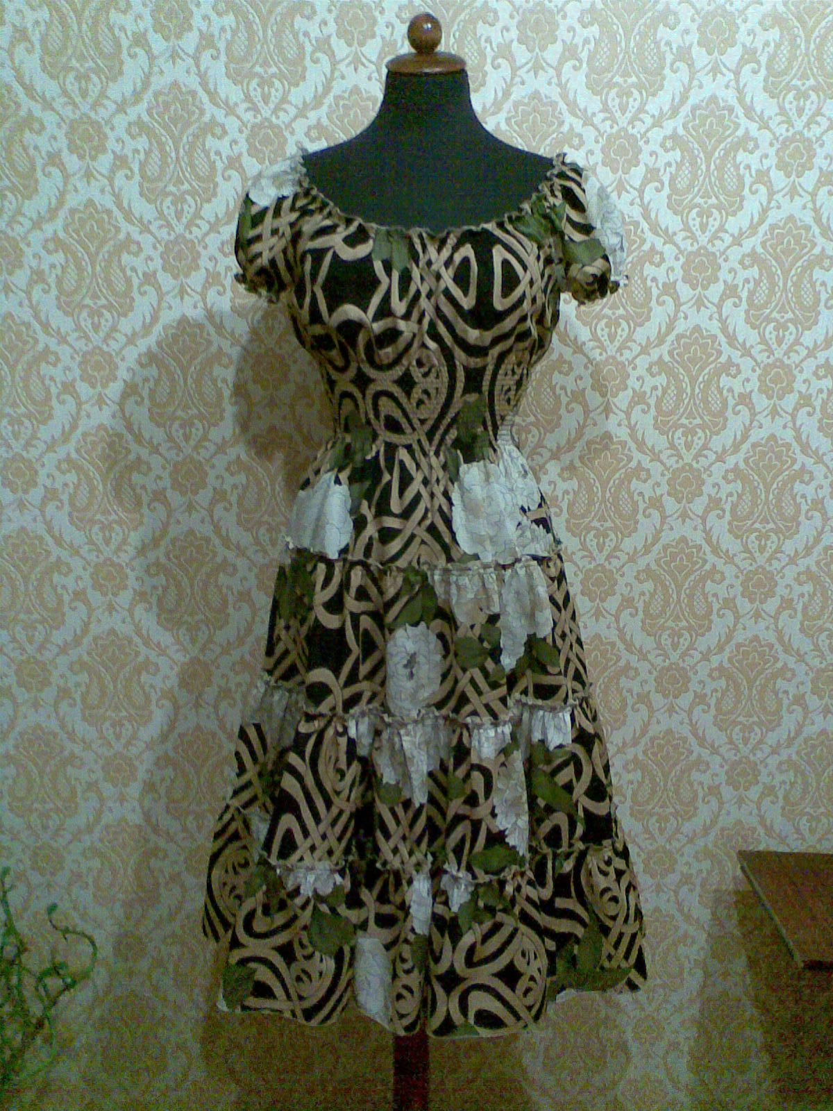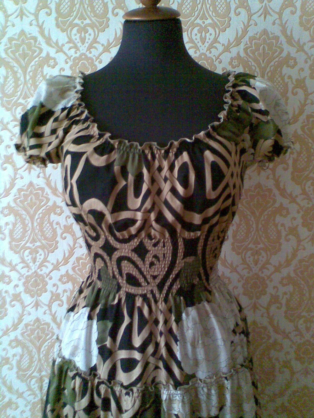 А вот и последняя работа, платье из хлопчатобумажного батиста "Roberto Cavalli" Ткань ждала своей очереди пару лет, ести и такая же джинса, думаю сделать из неё летний плащ.