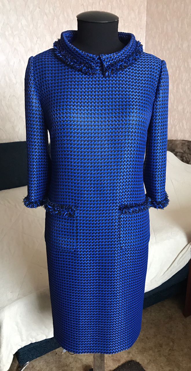 Клиентка принесла 180 см шерстяной ткани на костюм при её росте 168см и Об 118. При этом, больше метра отделочной шерсти. Я спросила у Гугла, сколько нужно на жакет Шанель. Гугл мне ответил 150 см. Тогда я подумала, что не правильно поняла клиентку, может она хотела юбку из голубой шерсти. Нет, нет, сказала она. Костюм из одной ткани. Где же столько режут, спросила я. В Италии. Что же, глаза боятся, руки делают. Не в первый раз. Когда нельзя, но клиенту очень хочется, то всегда найдется выход. Только уж, пеняйте на себя, если фантазия портного разбушуется.