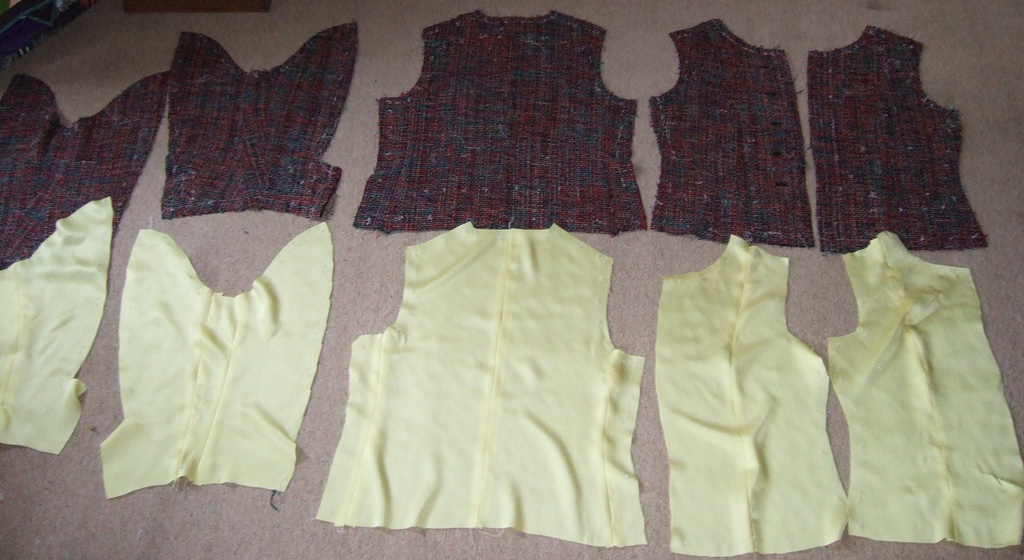 - перед сборкой "лица" и подкладки уже сострочены детали спинки и один шов рукава.
