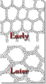 Как видите, ячейки сетки состоят из двойных (а у поздних кружев и из тройных) ниточек.