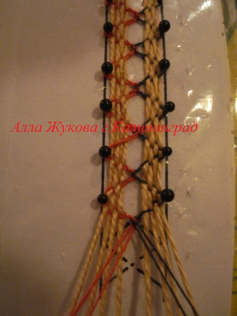 post-21297-1360823554_thumb.jpg Слева на право: Второе и третье на 4-х парах (добавлен в качестве скани, посередине красный и белый хлопок "Фиалка"),во втором случае скань вплетена полотнянкой, в третьем шнурочком. Последнее кромочное кружево на 5-и парах (добавлен красный посередине-уже две пары и вплетён козликом, похоже на косичку).
