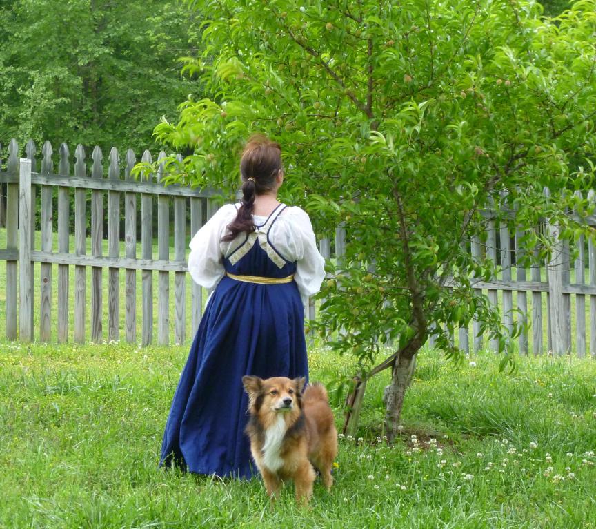 И ещё, пошила дочке платье на "средневековый день" в школе, тоже нашла сайт где такая же подвижница типа Фроси дотошно выстраивает authentic выкройки. Я раскроила из прямоугольника тунику, рукава зауженные, под мышкой ластовица и от талии вставки клинья. Пошила из тяжёлого полотна, украсила огрызком какой-то парчи, приятельница отдала. И тоже очень играло это платье.