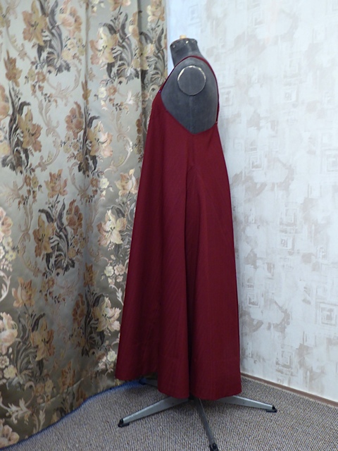 Косоклинный сарафан. Распашной, 25 пуговок. Ткань шерсть с полиэстером, мнется мало. На лямках. Лягушка цельнокроенная. По подолу почти 4 метра.