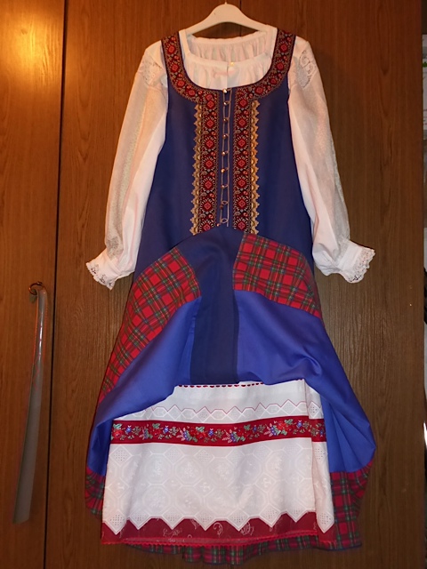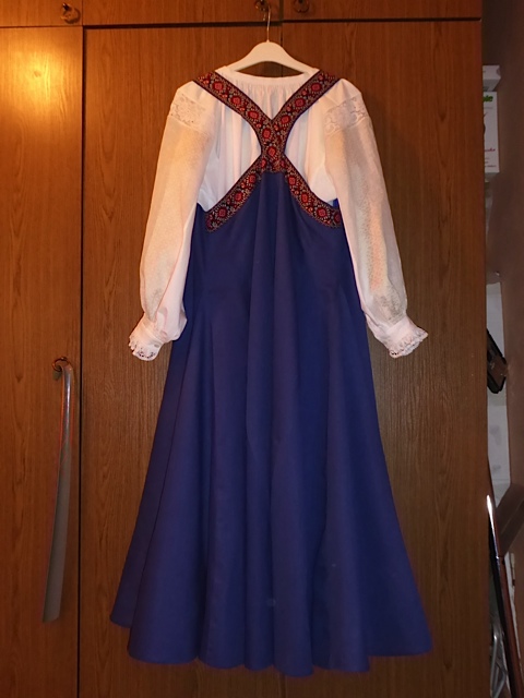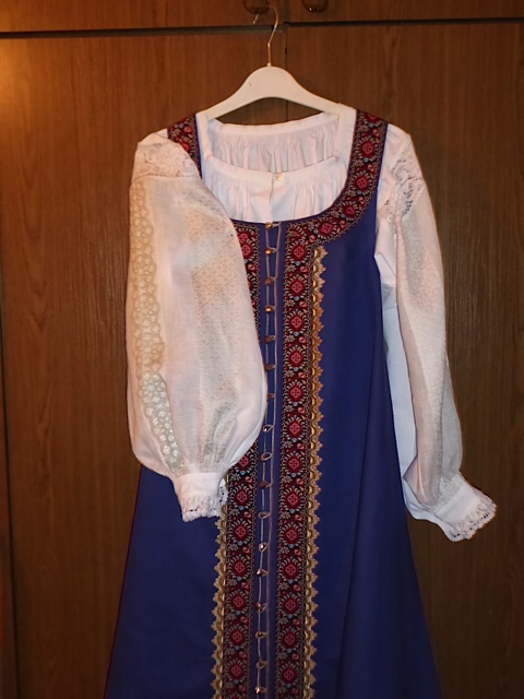 Вот этот костюм я его показывала в "прямых сарафанах" сатин на полном подкладе из ситца. 4 метра по подолу + рубаха= 2,5 кг. Хорошо носится. Красиво! Сюда еще бусы, головной убор.