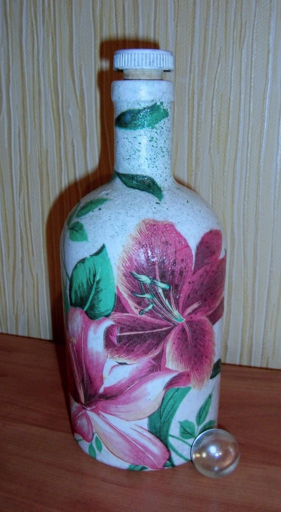 impel Опубликовано 9 мая, 2012 Поделиться #451 Опубликовано 9 мая, 2012 Дамы - -принимайие в компаниюПервый опыт- - декупаж бутылок для украшения кухниКосяков тьма,но я с этим борюсь, очень много передлопатила инфы и пробую и пробую....пока четыре бутылочки материалы -ПВА, лак на водной основе, акриловая белая краска в качестве грунтовки, автомобильная краска -спрей золотистого цвета и салфетки из обычного магазина.Хочу замахнуться на Вильяма нашего, Шекспира декупаж более серьёзных вещей и соотвтетственно заказать материалы именно для декупажа. Девочки -профи, посоветуйте пожалста, на что обратить внимание чтобы не промахнуться, буду очень благодарна. Заходите в гости Сделано с любовью...If you can't have the best, make the best of what you have Ссылка на сообщение Поделиться на другие сайты Поделиться