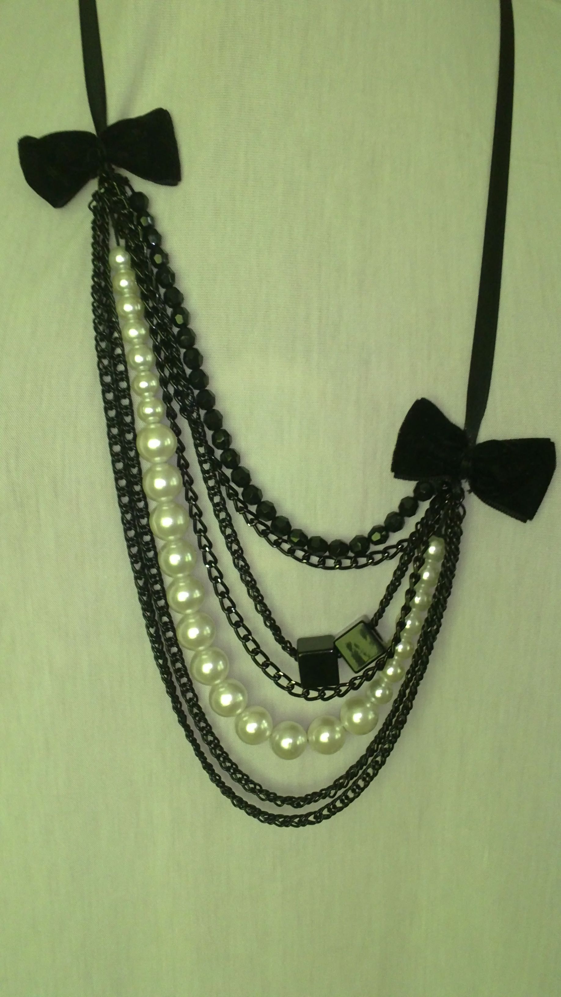 Бантики бархатные,куча цепочек,бусины иск.жемчуг,кубики-ездят по цепочке........