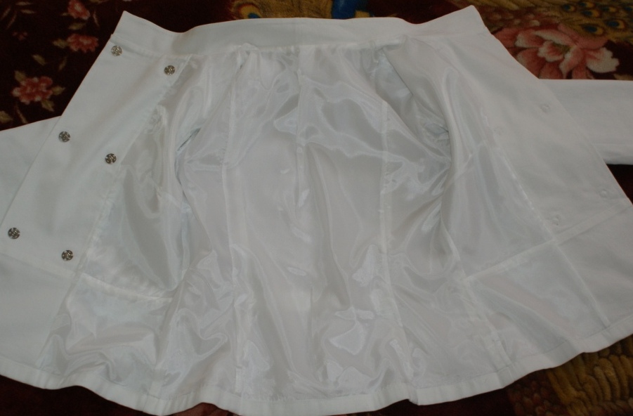 ZOO! Опубликовано 28 апреля, 2010 Поделиться #336 Опубликовано 28 апреля, 2010 Здрасьте всем!Я с обновкой. Просто ветровочка, к джинсикам самое то.Из бурды №8/2009Утречком раскроила - вечером готовое надела. И кучу комплиментов собрала :))) даже не ожидала, что просто белый пиджачек может иметь такой успех!С изнанкой не заморачивалась вообще, просто взяла подкладку и основную как один слой и прострочила. Застегивается на пришивные кнопочки, а пуговки просто для красоты сверху пришиты. Пусть будет все так, как мы хотим. Ведь мы не хотим ничего плохого.Моя взрослая темаМоя детская тема Ссылка на сообщение Поделиться на другие сайты Поделиться